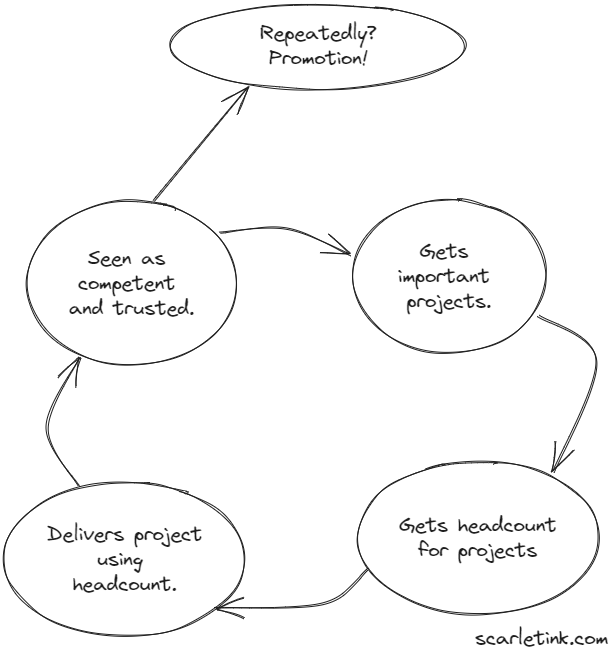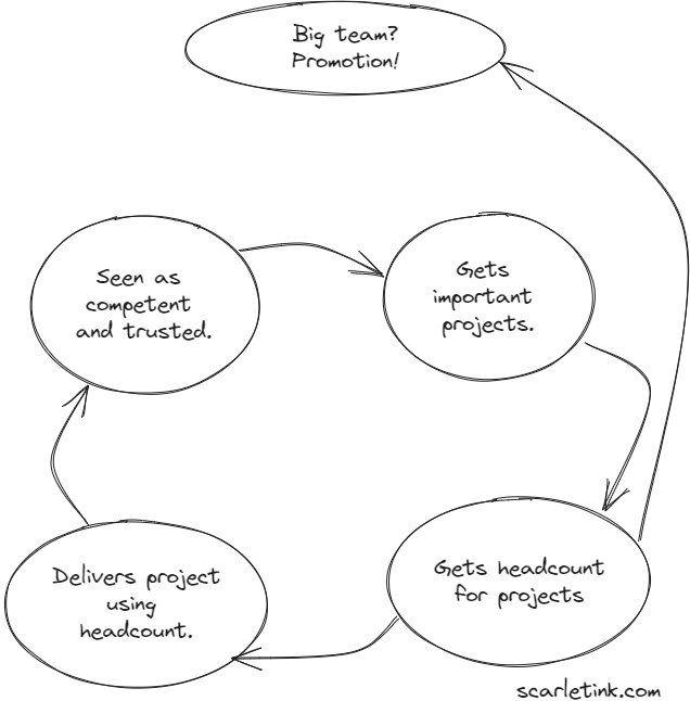 - With enough headcount, managers are promoted.